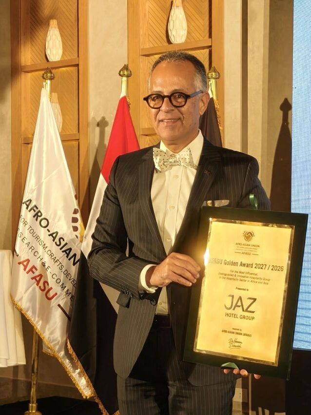 The awards were presented by Dr. Hossam Darwish, President of the Afro-Asian Union (AFASU) and Chairman of the International Golden Awards Committee, who also honored Mr. Alaa Akel, CEO of JAZ Hotel Group, as the “Best CEO in the Hospitality Sector for 2026.”