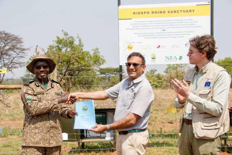 Spanning 18.2 km², the newly completed fenced sanctuary is a critical piece of Uganda’s National Rhino Conservation and Management Strategy (2018–2028) — a bold national commitment to returning rhinos to protected landscapes where they once roamed freely. Northern Rangelands Trust CEO Vishal Shah formally handed over the completion report and sanctuary to Charles Tumwesigye, Commissioner of Field Operations at Uganda Wildlife Authority, signalling the beginning of a new chapter in Uganda’s rhino recovery story.